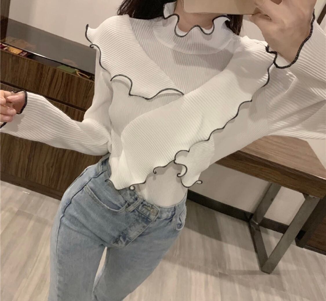 送料無料! フリルリブトップス 2色展開