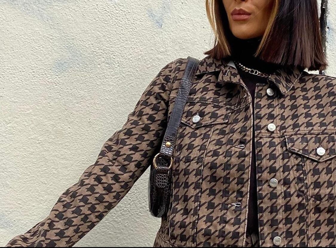 送料無料!!千鳥柄ブラウンセットアップ