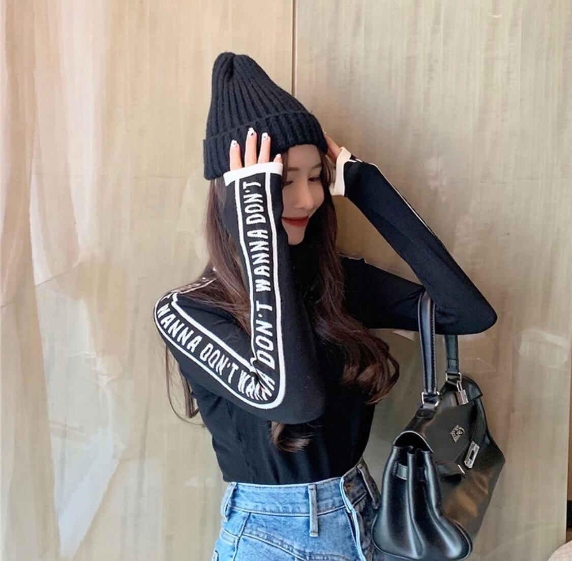 送料無料!!アルファベットラインニットトップス 3色展開