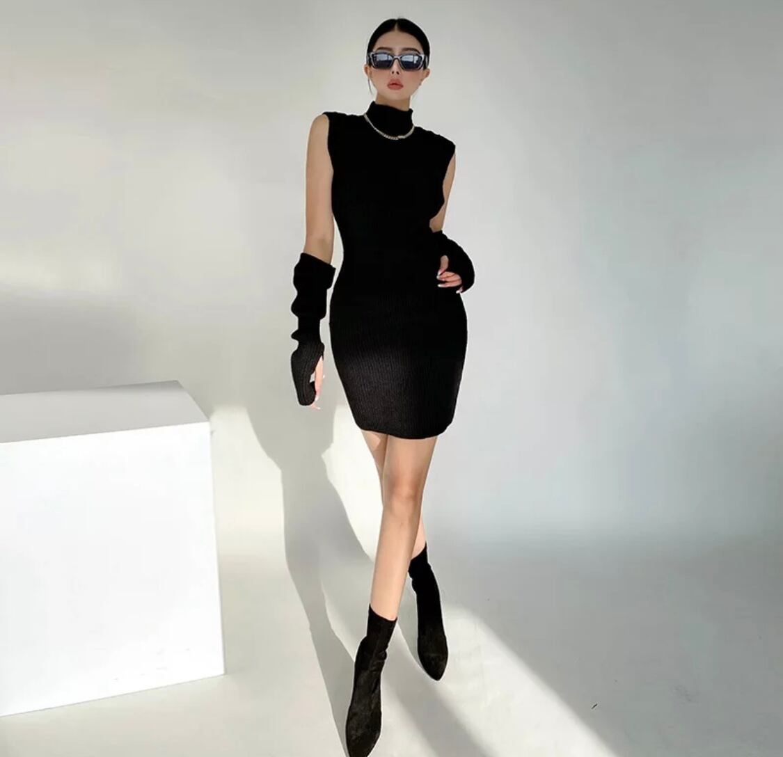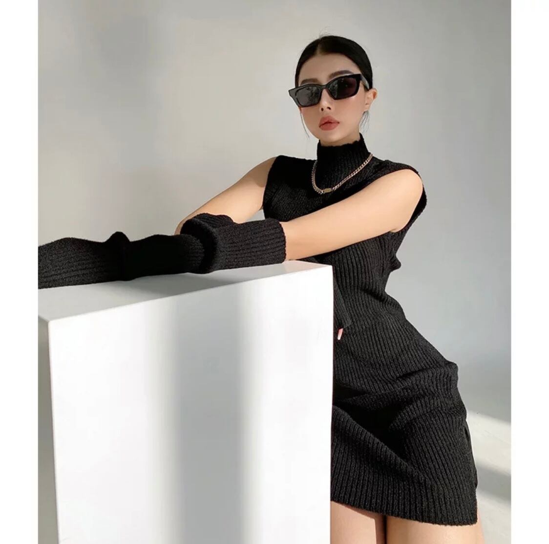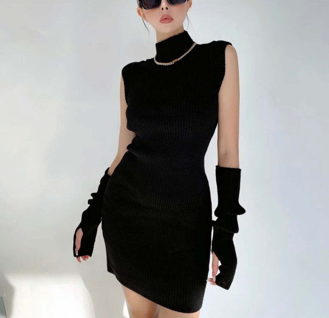 送料無料!!アームウォーマーリブニットワンピース 2色展開